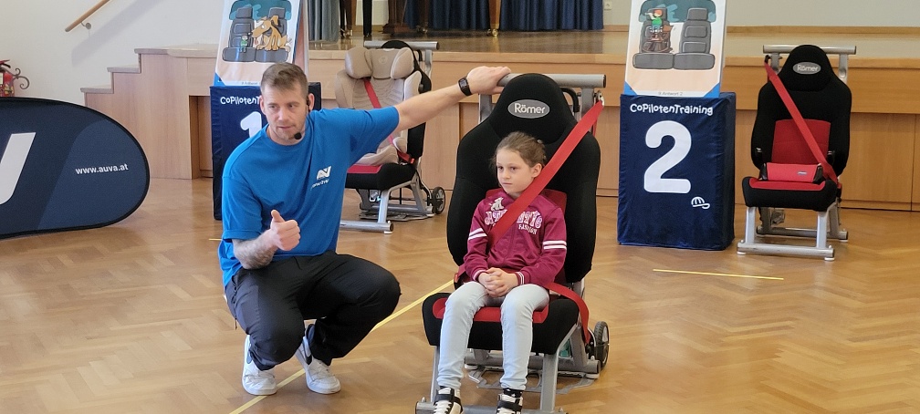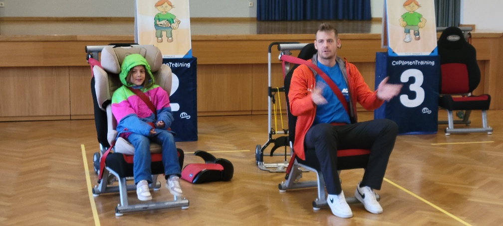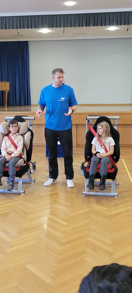 Die Sicherheit der uns anvertrauten Kinder ist uns sehr wichtig. Jedes Schuljahr werden verschiedene Aktivitäten im Rahmen der Verkehrserziehung und Verkehrssicherheit angeboten. Im Herbst 2025 war die AUVA mit dem „Copilotentraining“ zu Gast. Die Schülerinnen und Schüler der 3. und 4. Schulstufe durften ihr Wissen über die richtige Sicherung im Auto unter Beweis stellen und sie erfuhren, wie wichtig es ist, richtig gesichert im Auto als Copilot mitzufahren.